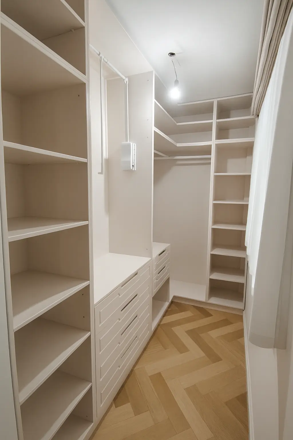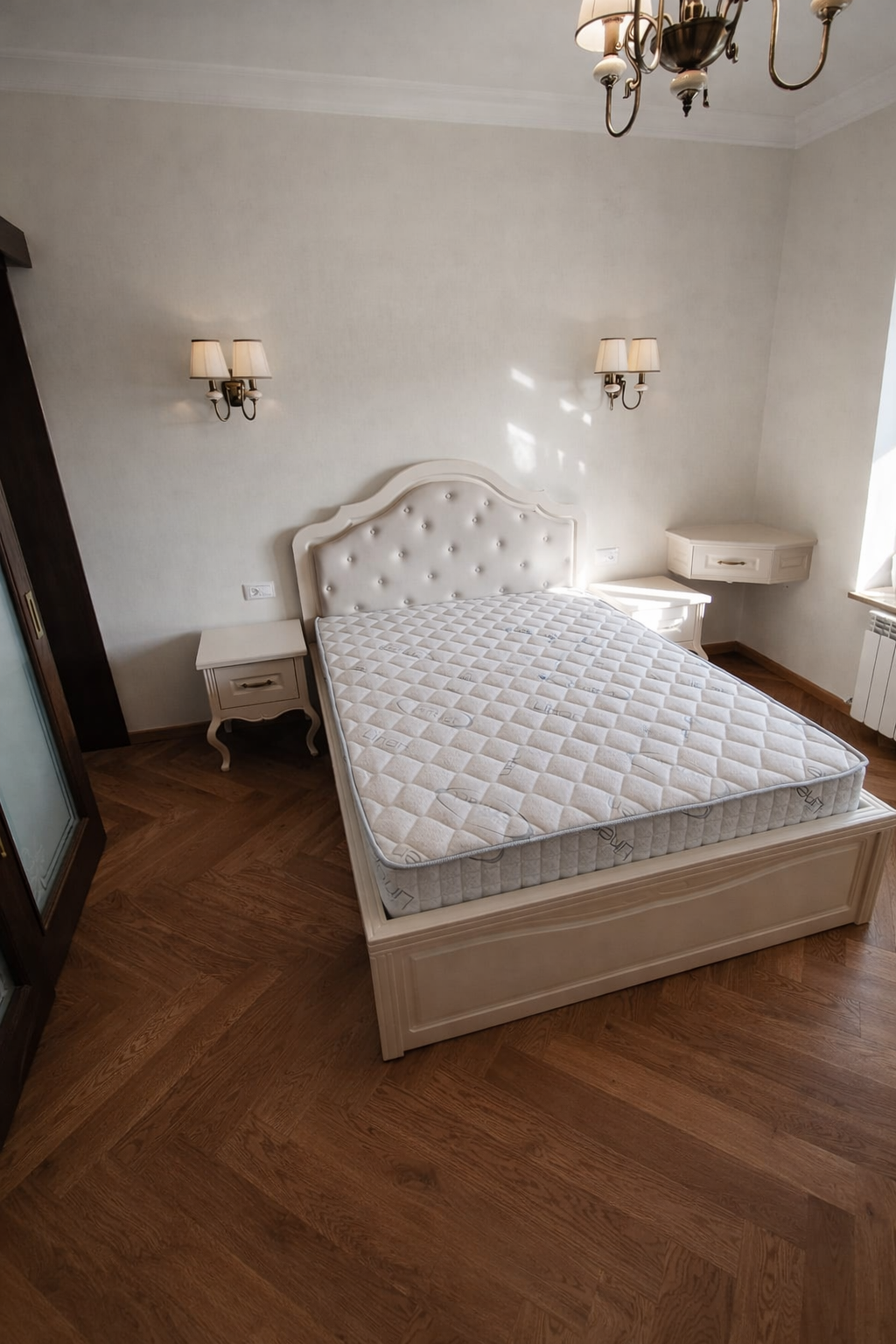 Caracterizat prin linii drepte și elemente decorative într-o simetrie ordonată, dormitorul devine locul preferat atunci când dormim sau ne încărcăm bateriile. Patul, cu eleganța sa, devine piesa centrală a dormitorului, invitând la relaxare și un somn liniștit. În același timp, poziționarea strategică a dressingului, care se abate de la tiparul tradițional, completează organizarea eficientă a spațiului de depozitare.